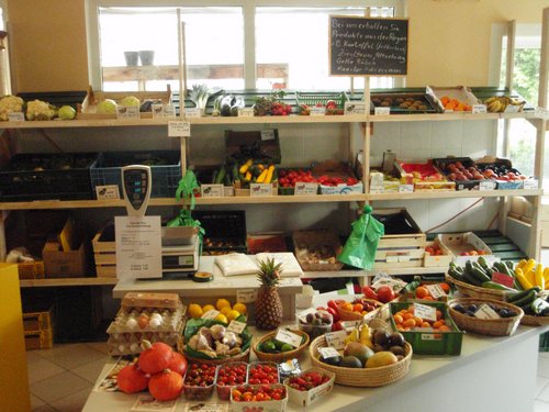 Obst und Gemüse, je nach Saison auch aus eigener Produktion, verkaufen wir ebenso in unserem Dorfladen.
