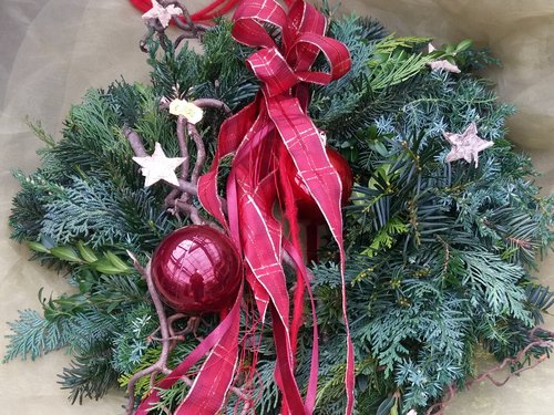 Rundgebundene Kränze zum Aufhängen und Sondergrößen sind auf Vorbestellung jederzeit möglich.